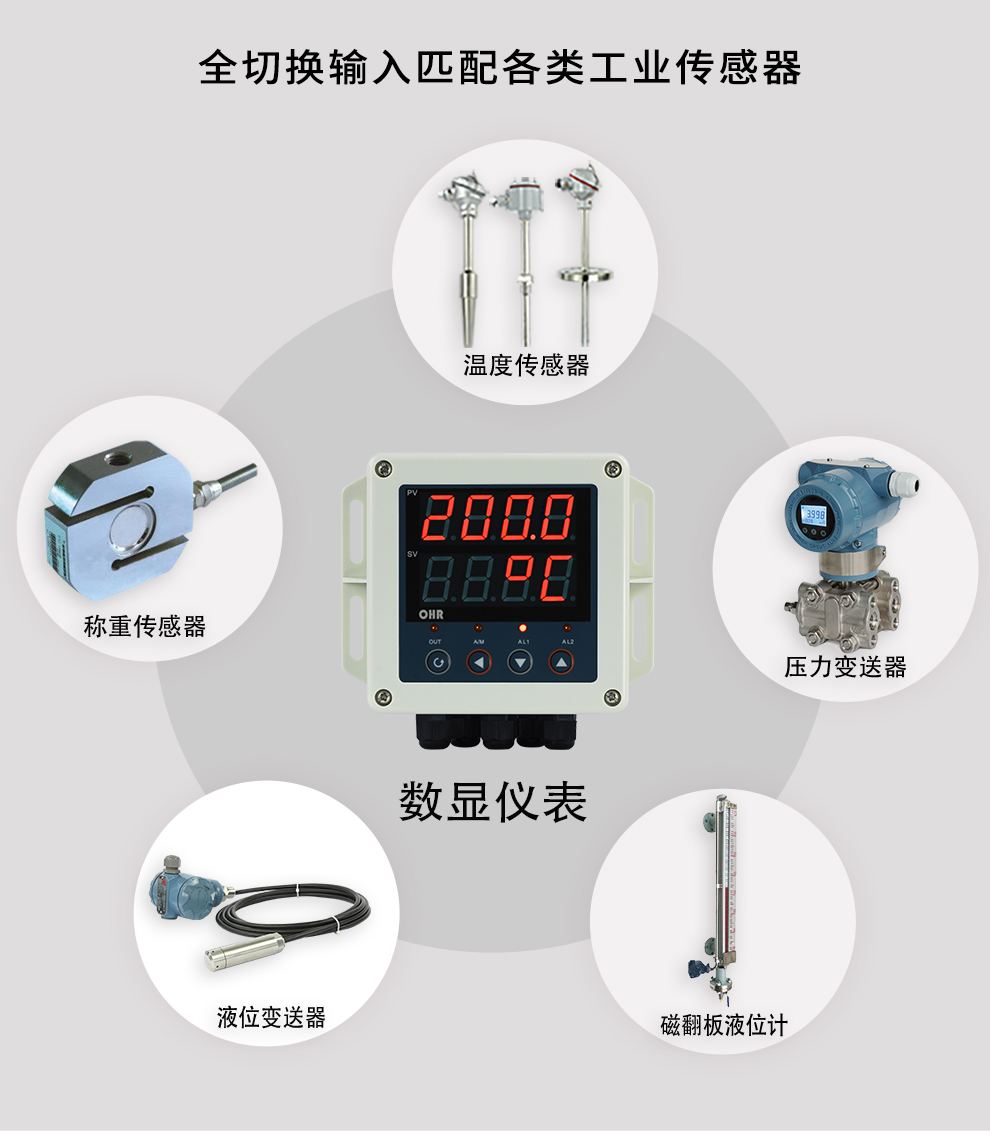 OHR-BG10系列壁掛式數字顯示控制儀采用了表面貼裝工藝,全自動貼片機生產,具有很強的抗干擾能力。可對溫度、壓力、液位等工業過程參數進行測量、顯示、報警控制、變送輸出、數據采集及通訊。