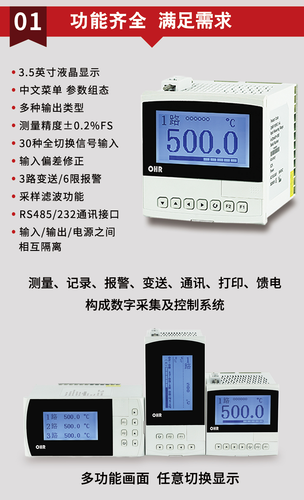 OHR-F100R系列無紙記錄儀集顯示、控制、記錄、遠傳等多種功能于一身,可以采集、保存、分析各種工業過程中的重要數據,主要應用在冶金、石油、化工、建材、造紙、食品、制藥等各種工業現場。