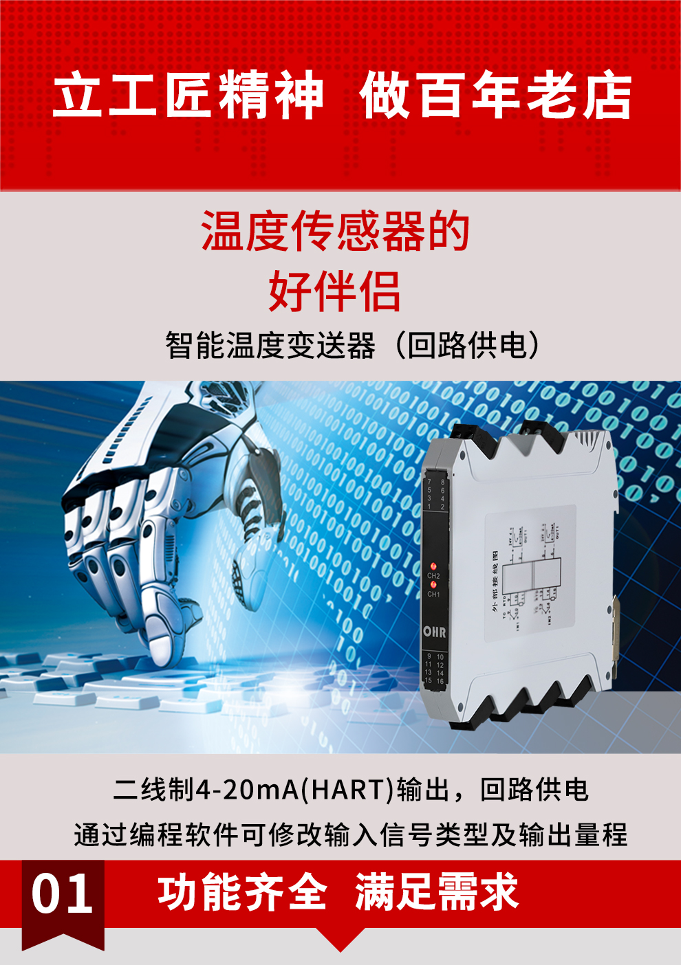 回路供電溫度變送器分為M213智能溫度變送器、M214隔離智能溫度變送器、M215 HART智能溫度變送器,變送器將現(xiàn)場(chǎng)的熱電阻或熱電偶信號(hào)經(jīng)過(guò)隔離放大處理,轉(zhuǎn)換為與溫度成線性的二線制4-20mA(HART)信號(hào)輸出至控制系統(tǒng)。