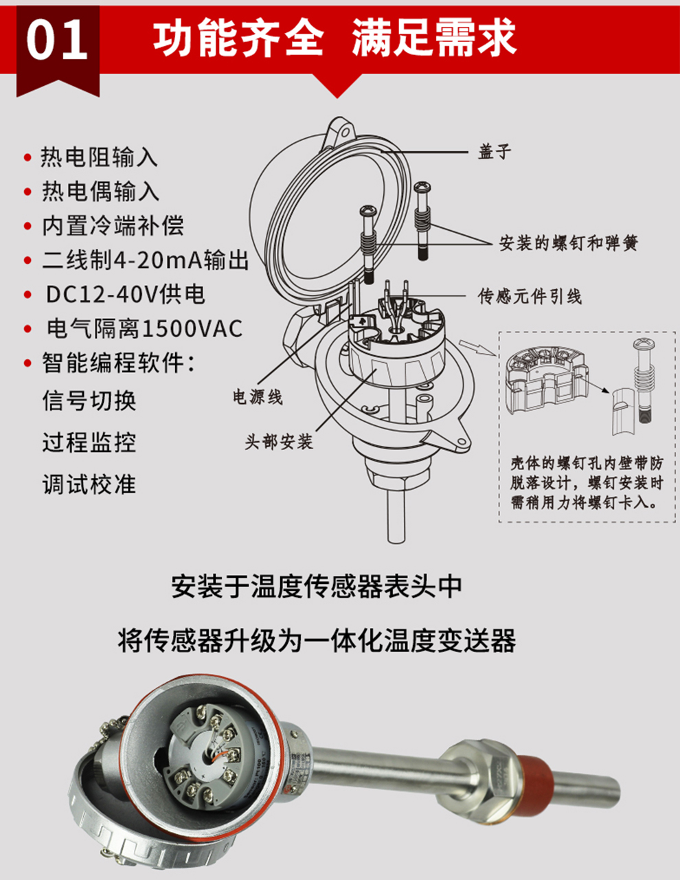 OHR-214隔離智能溫度變送器(圓卡),用于熱電阻(RTD)、熱電偶(TC)信號輸入,二線制4~20mA模擬輸出,安裝于傳感器內(nèi)部(Form B)。