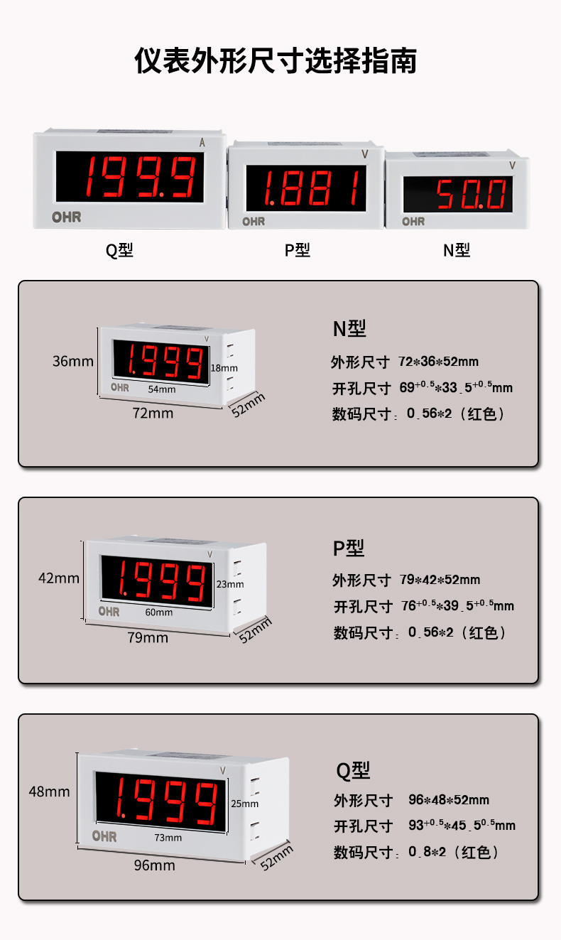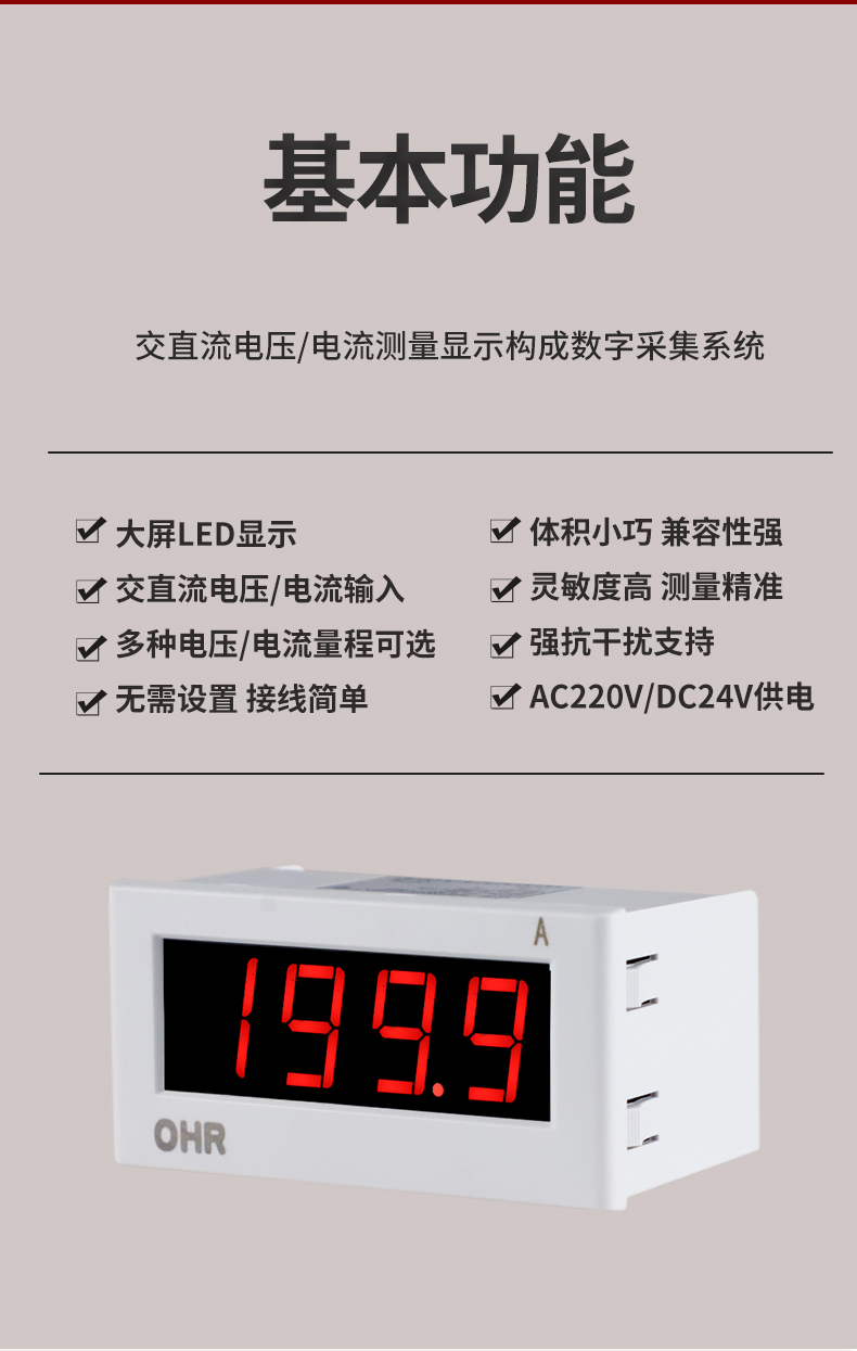 OHR-D300系列電壓/電流表是一種小體積的經(jīng)濟(jì)型數(shù)字式電測(cè)儀表,主要用于對(duì)電氣線路中的交直流電壓或交直流電流進(jìn)行實(shí)時(shí)測(cè)量,并用LED數(shù)碼管以數(shù)字直讀方式進(jìn)行顯示。產(chǎn)品具有穩(wěn)定性好,抗干擾性強(qiáng),性?xún)r(jià)比高等優(yōu)點(diǎn),且產(chǎn)品體積小,可直接替代原有指針式儀表。廣泛應(yīng)用于穩(wěn)壓器、點(diǎn)焊機(jī)、校驗(yàn)臺(tái)等電氣設(shè)備或系統(tǒng)中。