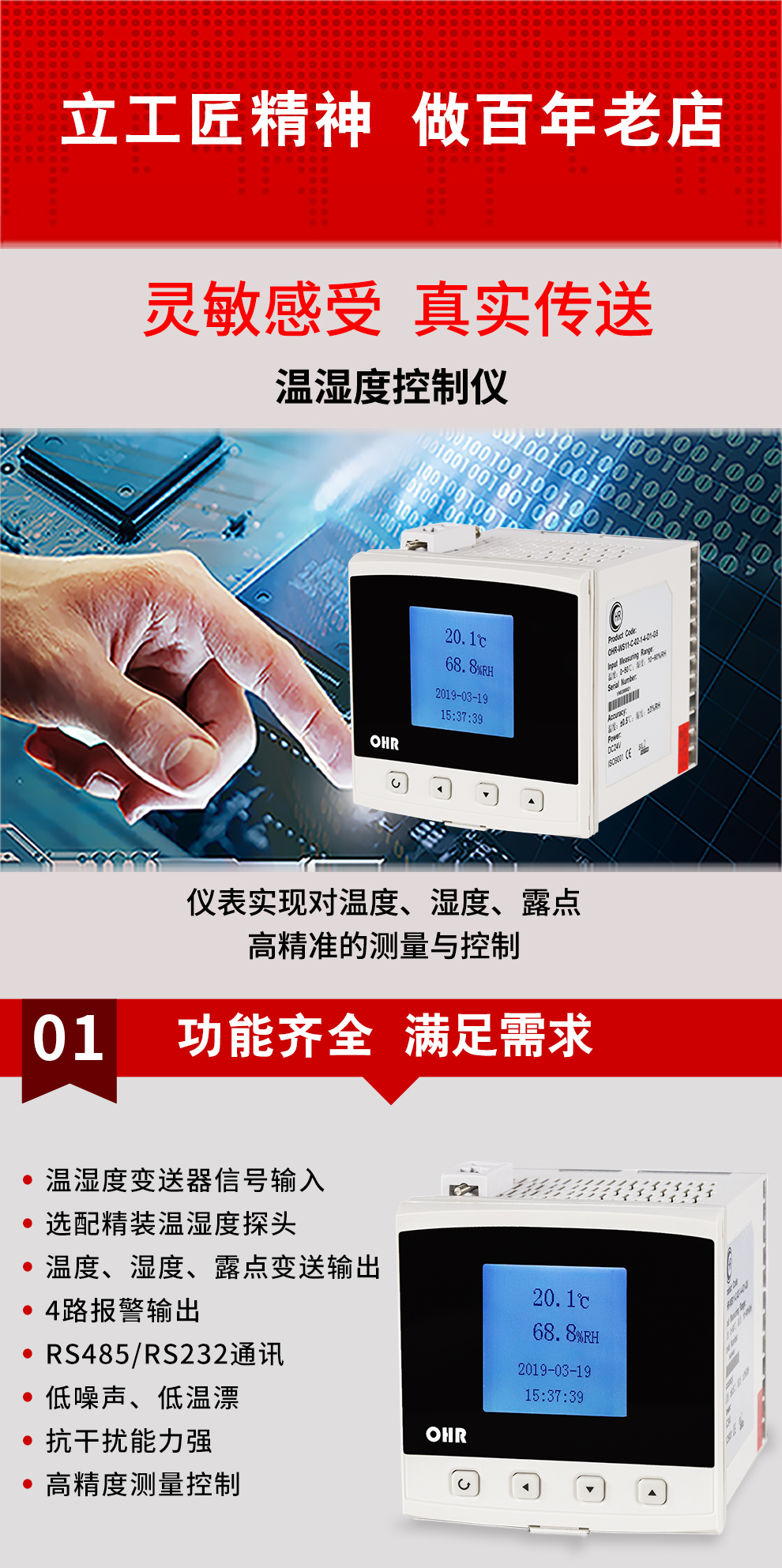 OHR-WS10系列溫濕度控制儀以先進(jìn)的32位ARM處理器為核心,采用進(jìn)口高性能溫濕度傳感器,可同時(shí)對(duì)被測(cè)環(huán)境的溫度、濕度進(jìn)行測(cè)量和控制,并可通過(guò)溫、濕度計(jì)算出露點(diǎn)。它具有精度高、穩(wěn)定性強(qiáng)、響應(yīng)速度快等特點(diǎn),適用于通訊機(jī)房、辦公室、醫(yī)院、檔案館、博物館、賓館、樓宇自控等場(chǎng)所的溫濕度測(cè)量。