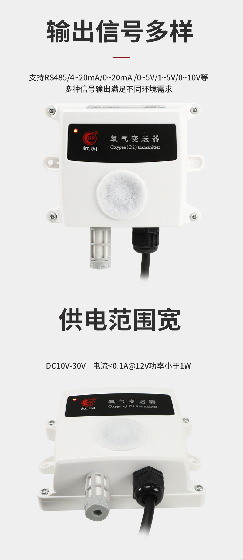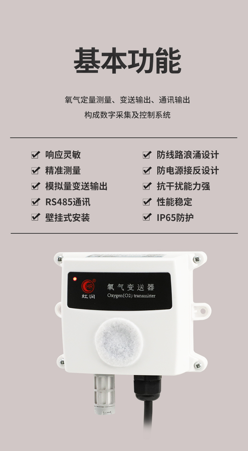 OHR-MT10系列氧氣變送器采用電化學(xué)原理實(shí)現(xiàn)對(duì)氧氣的定量測量,具有反應(yīng)靈敏,低功耗,高精度, 測量范圍寬,抗干擾能力強(qiáng)等特點(diǎn)。產(chǎn)品適用于多種場合,尤其適用于倉庫、車間、化工廠、礦下、畜牧 業(yè)中對(duì)氧氣含量的監(jiān)測。該產(chǎn)品采用寬壓10~30V直流供電,模擬量信號(hào)輸出或RS485通訊輸出可選。