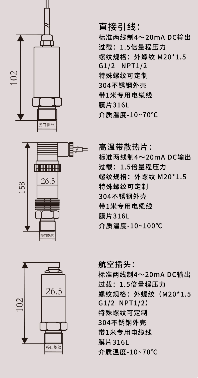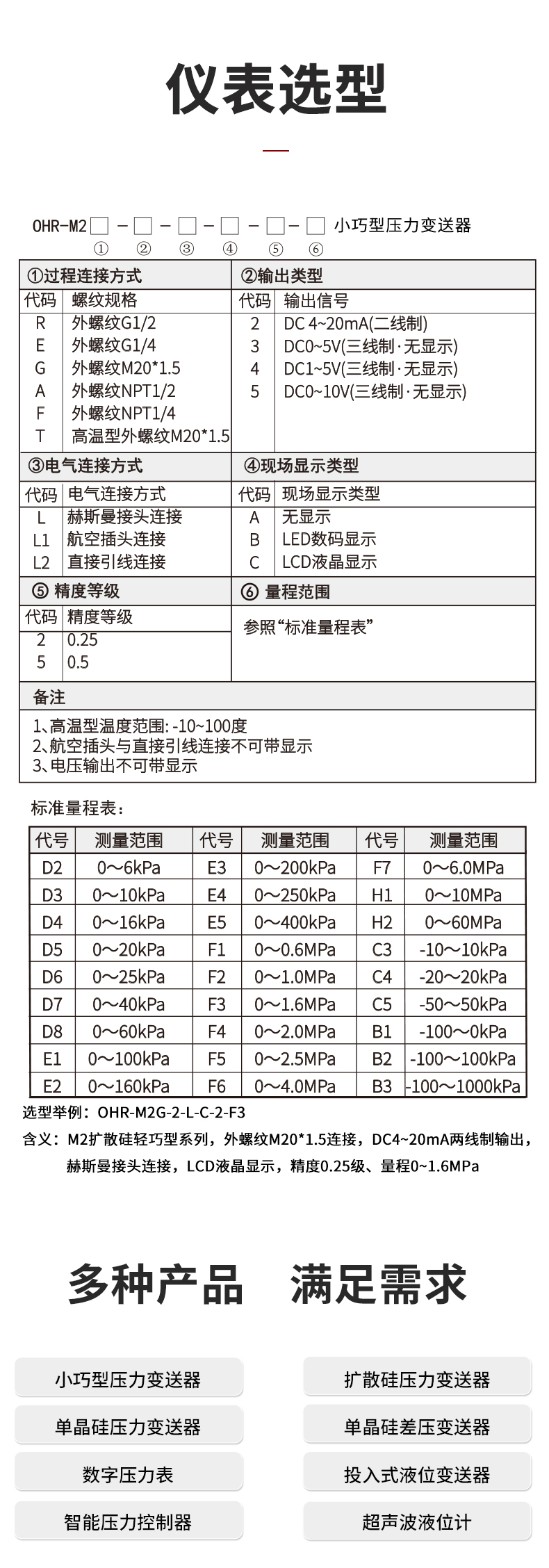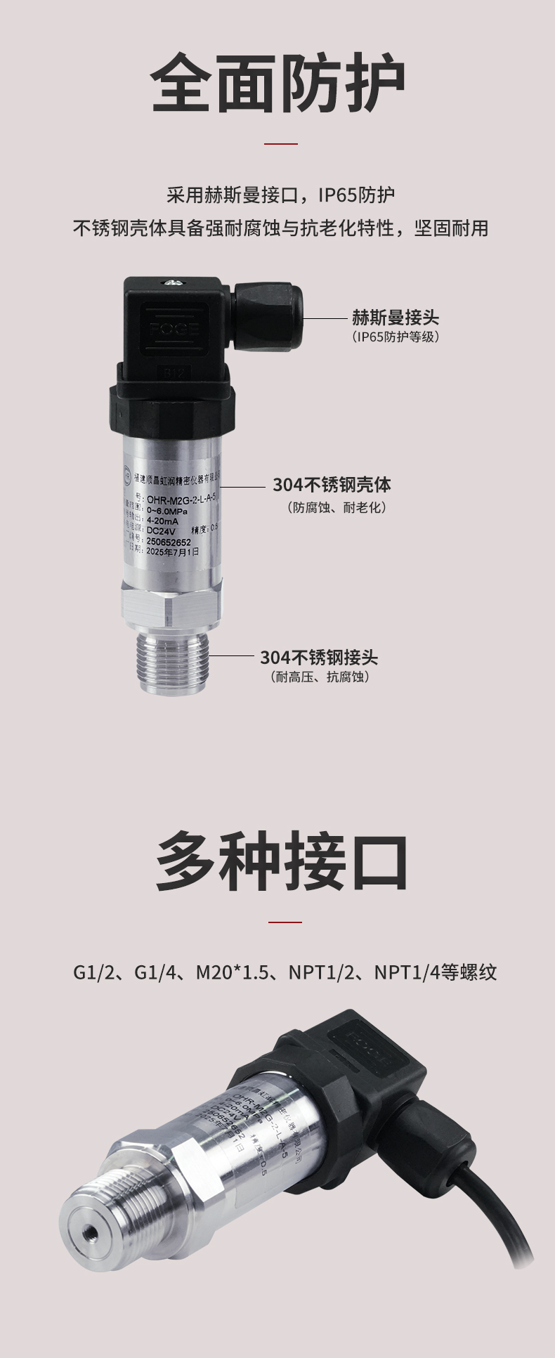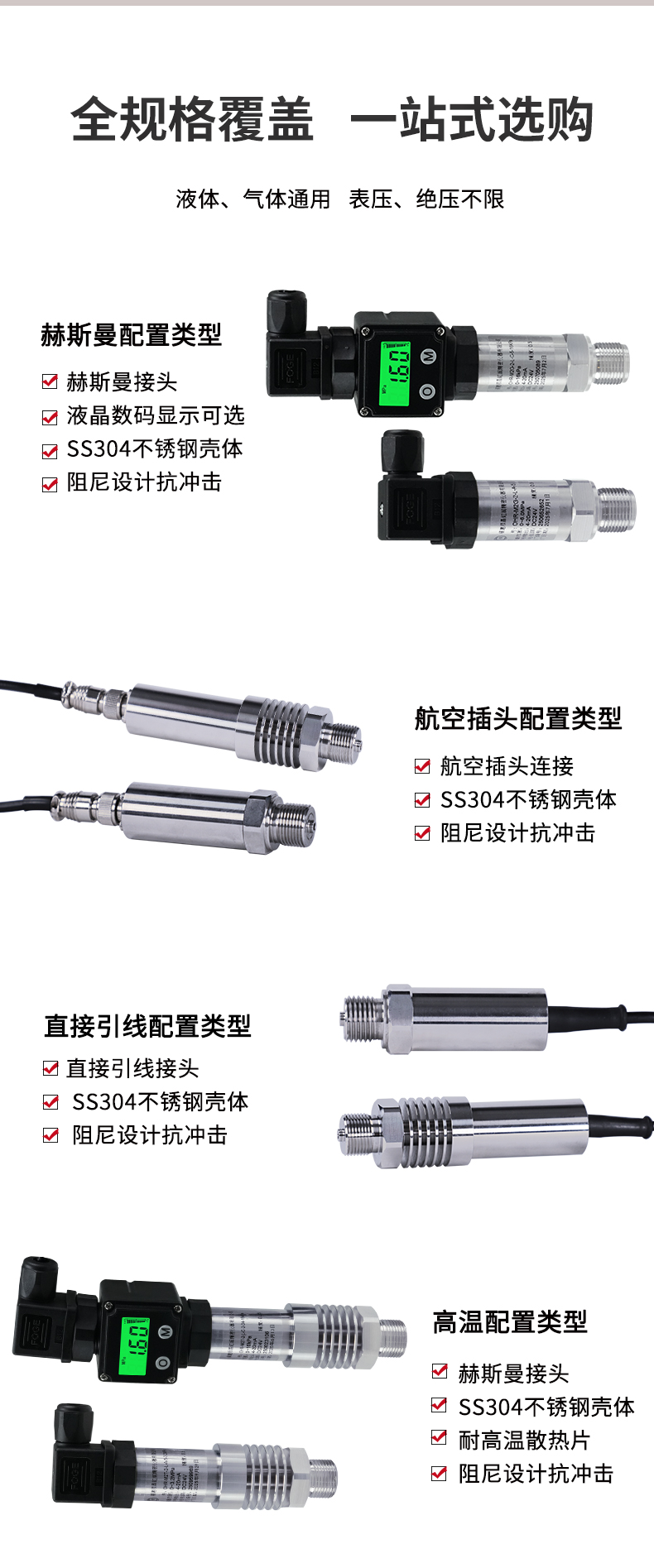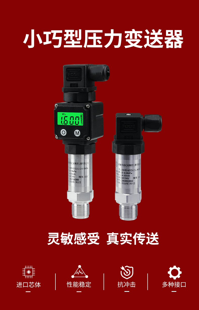 M系列小巧型壓力變送器內部使用擴散硅壓阻式傳感器,其結構簡單,體積小巧,易安裝;以其優良的可靠性、適用性、靈活性和多樣性,廣泛的應用于航空、航天、石油、化工、冶金、電力、水利等工業過程現場的壓力測量和控制。