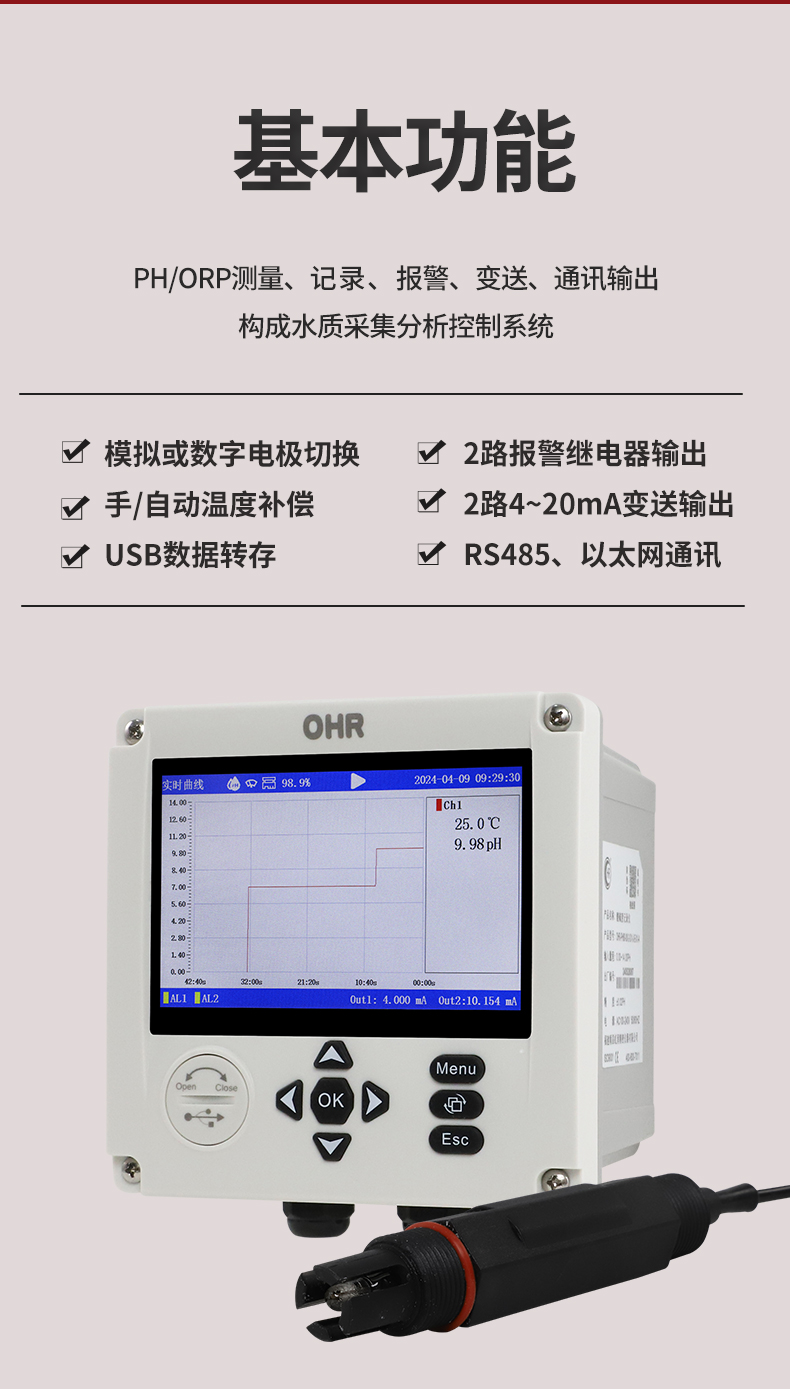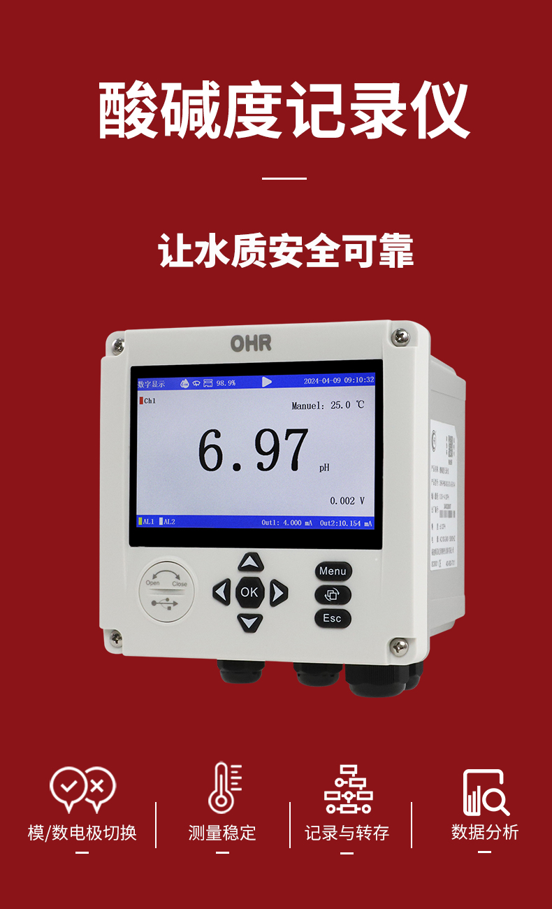 OHR-PH80系列酸堿度記錄儀是一款在線化學(xué)分析記錄控制器,主要用于測量水溶液的 pH值和ORP值。用戶可以通過配接相應(yīng)的pH電極或ORP電極來進(jìn)行測量。該記錄儀能夠?qū)? 時監(jiān)測溶液的酸堿度情況,為相關(guān)工業(yè)過程提供準(zhǔn)確的化學(xué)分析數(shù)據(jù)。