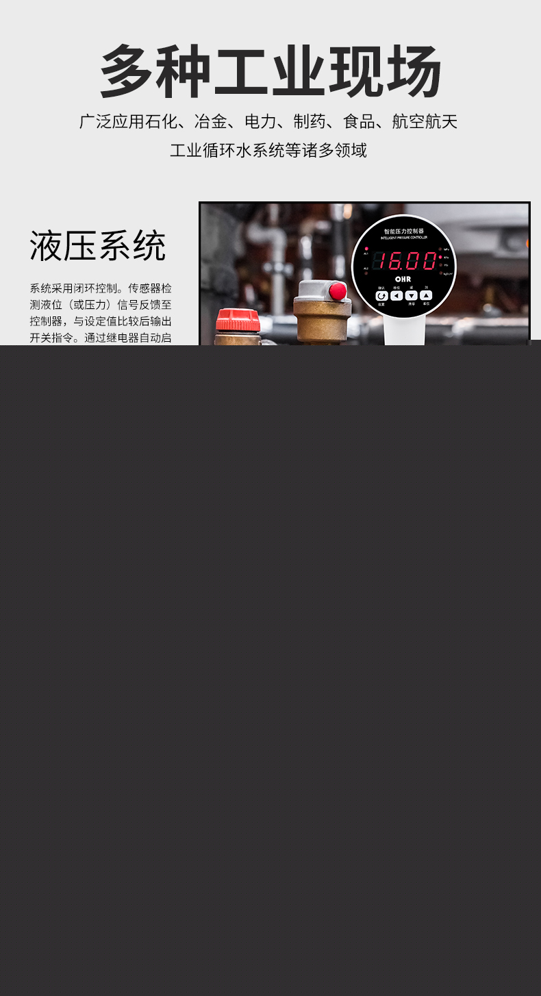 OHR-DP20系列智能壓力控制器是集壓力測量,顯示,輸出,控制于一體的智能數顯壓力測控產品。廣泛應用于水電 ,自來水,石油,化工,機械,液壓等行業,對流體介質的壓力進行現場測量顯示和控制。