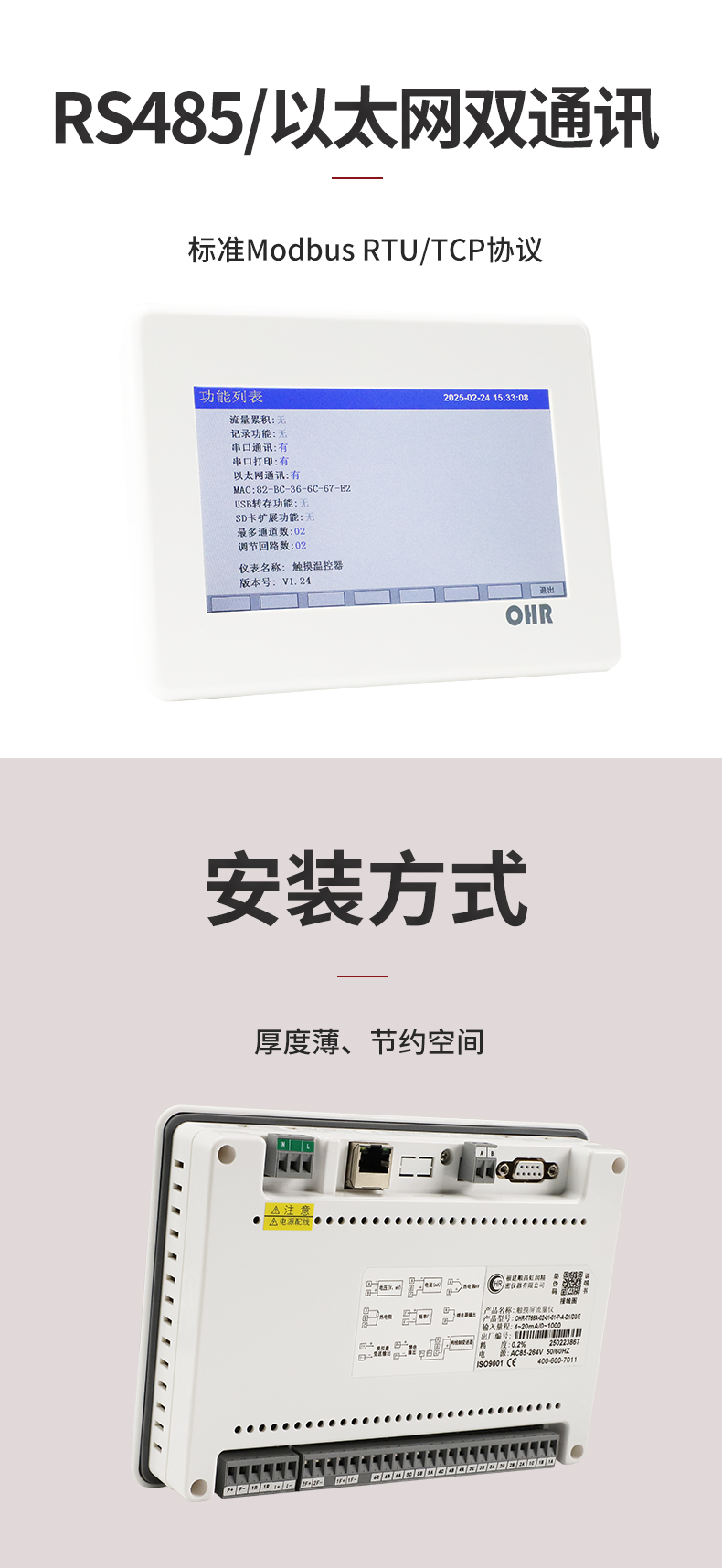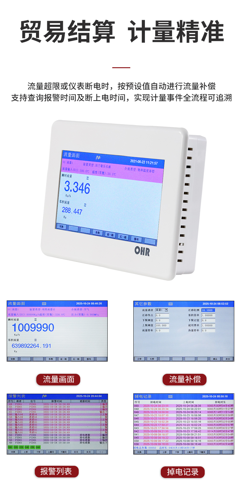 NHR系列系列觸摸屏流量?jī)x最多6路萬(wàn)能輸入其中可帶2路流量輸入。具有繼電器報(bào)警輸出、變送 輸出,饋電輸出,流量積算,溫壓補(bǔ)償功能;可帶RS485通訊接口,以太網(wǎng)接口,微型打印機(jī)接口;具有強(qiáng)大的顯示功能,實(shí)時(shí)測(cè)量顯示,棒圖顯示,報(bào)警狀態(tài)顯示,流量顯